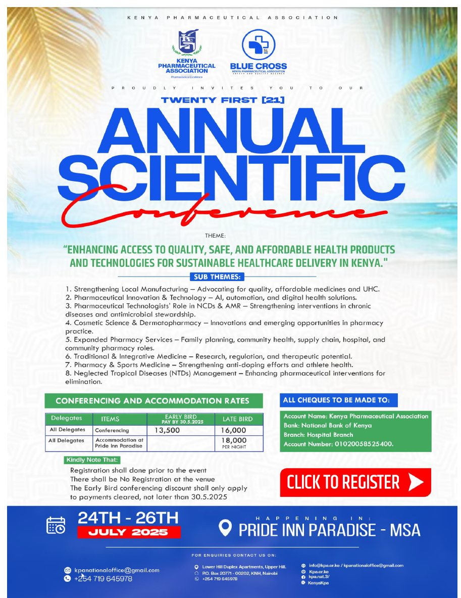 Sign up for The 21st Kenya pharmaceutical association Annual scientific conference